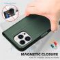 SHIELDON iPhone 14 Pro Wallet Case, iPhone 14 Pro Genuine Leather Cover with Magnetic Clasp - Midnight Green